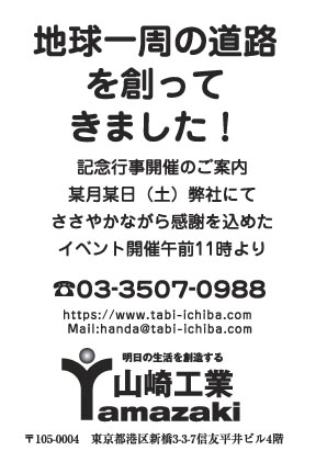 地球一周分の道路を手掛けた山﨑工業様の地球一周工事記念のイベントの案内チラシです。