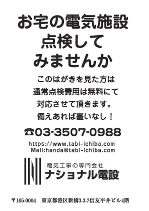 家庭や事務所などの電気施設の定期点検の無料でお受けするキャンペーンのご案内チラシ印刷デザインです。