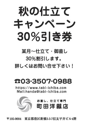 8月の比較的売り上げが落ちる時期に限定した30%割引のクーポンをチラシを兼ねて配布しませんか?
