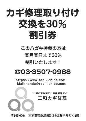 三和カギ修理様のチラシに30%割引のクーポンを印刷してみました。