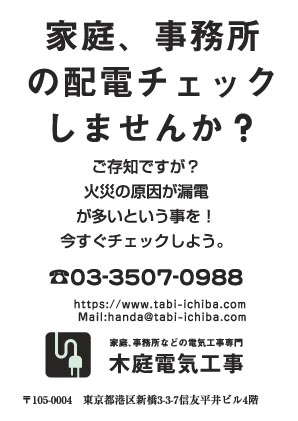 火災の原因にいつも上位にランキングするのが漏電です。家庭や小さな事務所などを専門に電気工事とメンテナンスを主に引き受けているのが、木庭電機工事様です。
