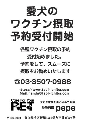 愛犬や愛猫の定期的に接種しているワクチンの接種予約のご案内のチラシです。